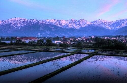 天神坂 早起きして(というか勝手に起きた)天神坂へ田んぼに映る北アルプスを撮影に行きました。行きましたって言ってもハイランドホテルの目の前ですが。 5時前だったので、まずは夜明け前の状態を写して見ました。反射はいい状態ですが・・・ 2年前に撮影…