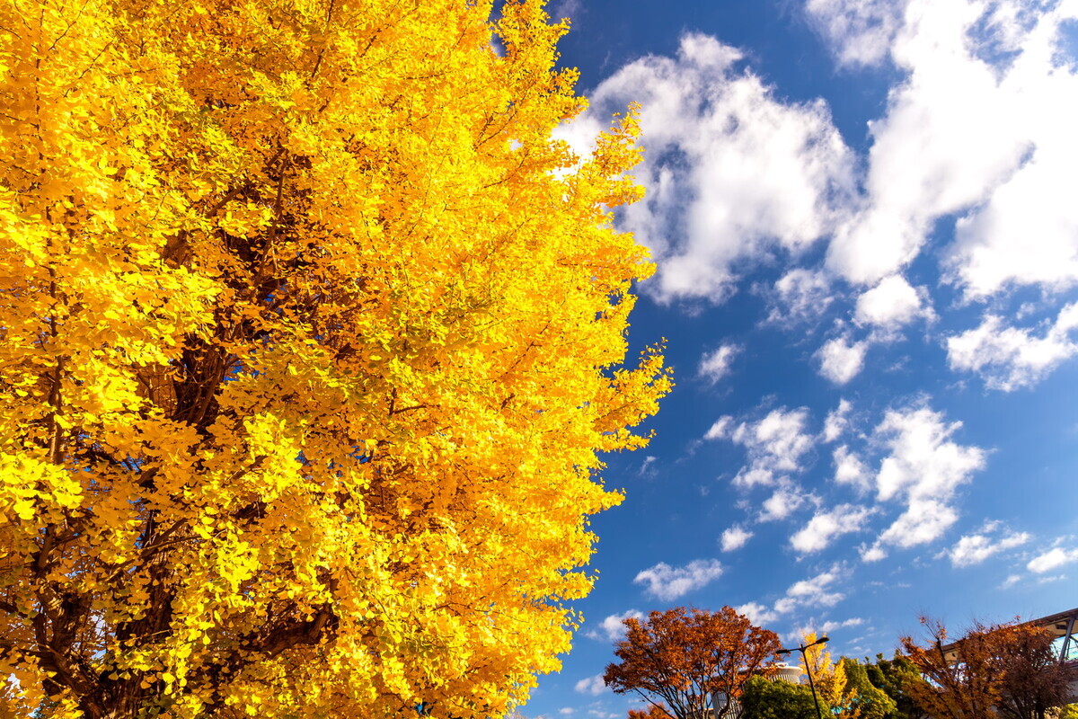東京競馬場の正門近くのイチョウ、真っ黄色でした。